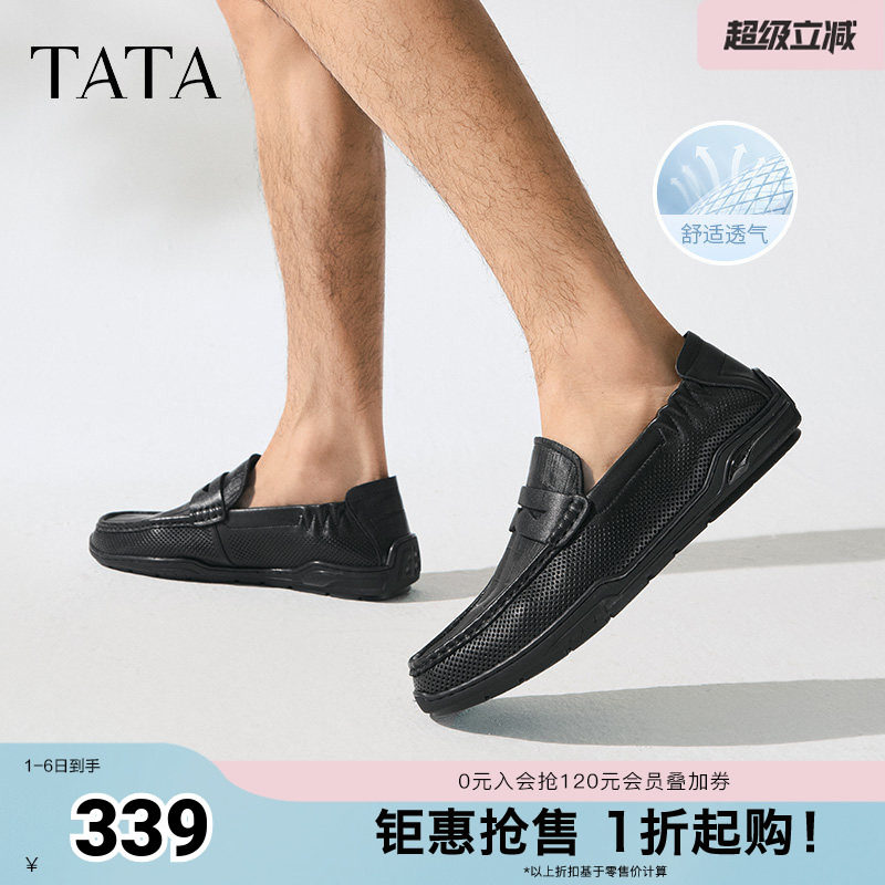 TATA他她一脚蹬透气豆豆鞋男士懒人英伦皮鞋男鞋秋季新款QGE01BM5