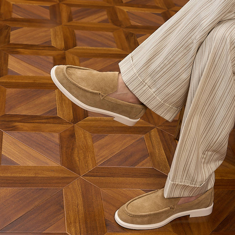 YUESIRS英伦风反绒皮乐福鞋男休闲一脚蹬平底懒人鞋轻便透气春夏