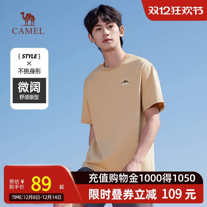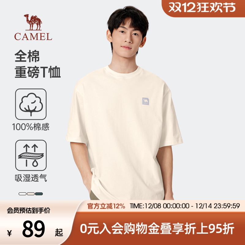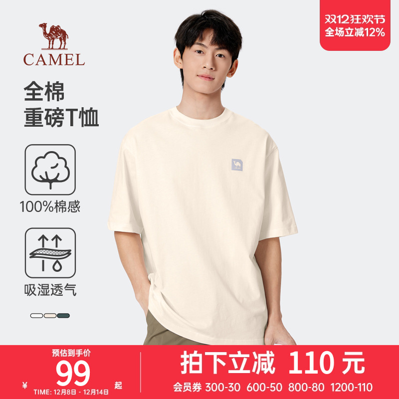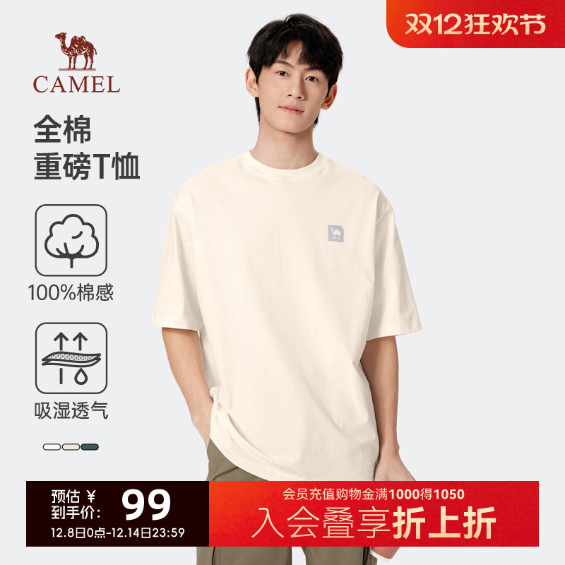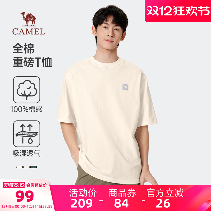 【100%纯棉】骆驼短袖T恤男春夏新款重磅休闲上衣宽松圆领打底衫