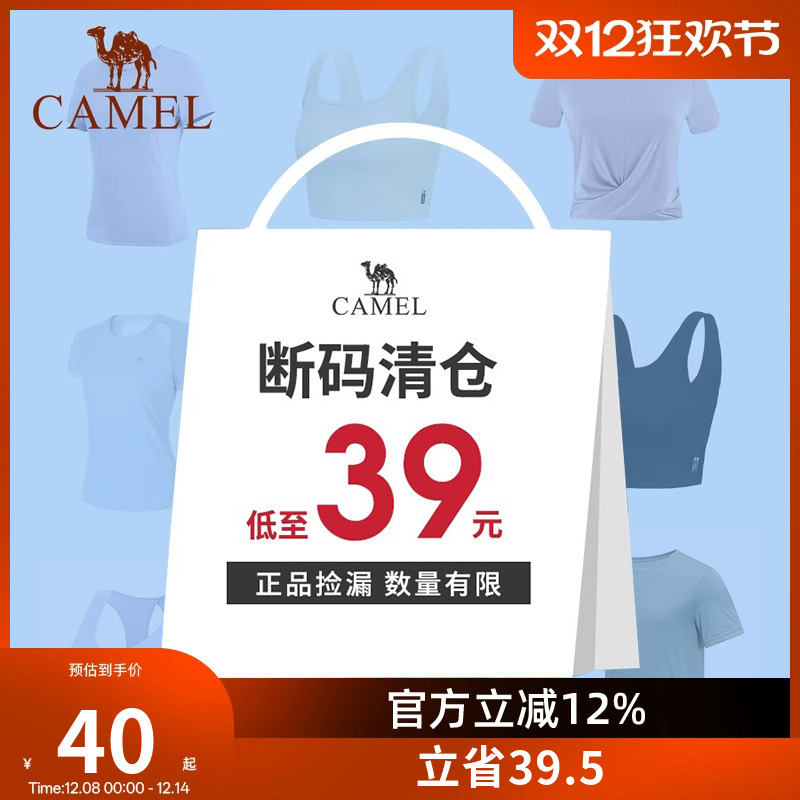 【断码清仓】骆驼瑜伽短袖T恤运动上衣健身内衣跑步短裤清完即止