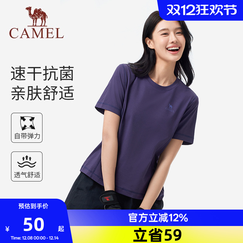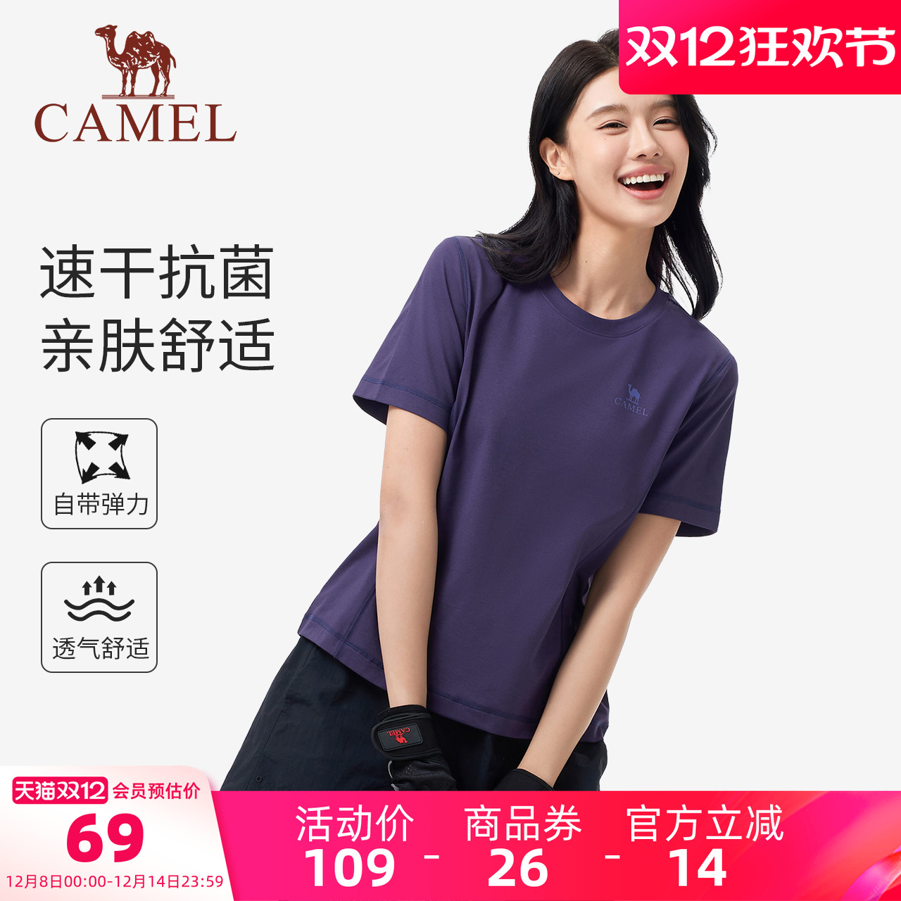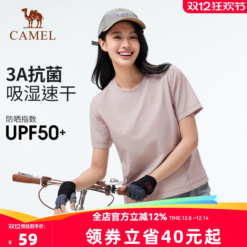 骆驼女装夏日短袖女T恤速干衣新款百搭抗菌防晒衫运动休闲上衣男