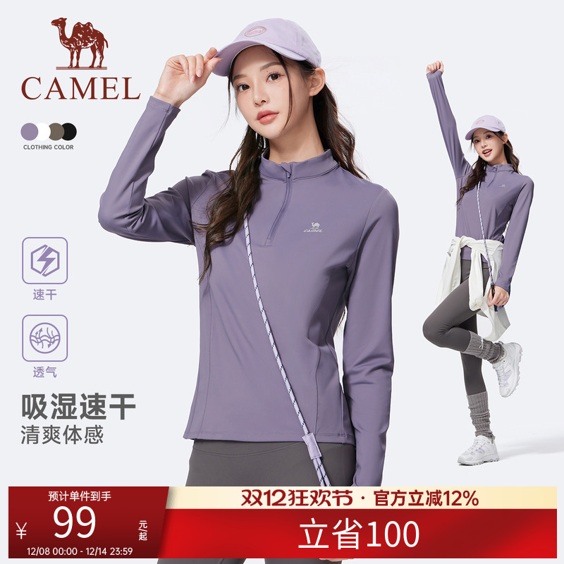 骆驼运动长袖速干t恤女2025夏季薄款弹力短袖健身跑步瑜伽上衣男