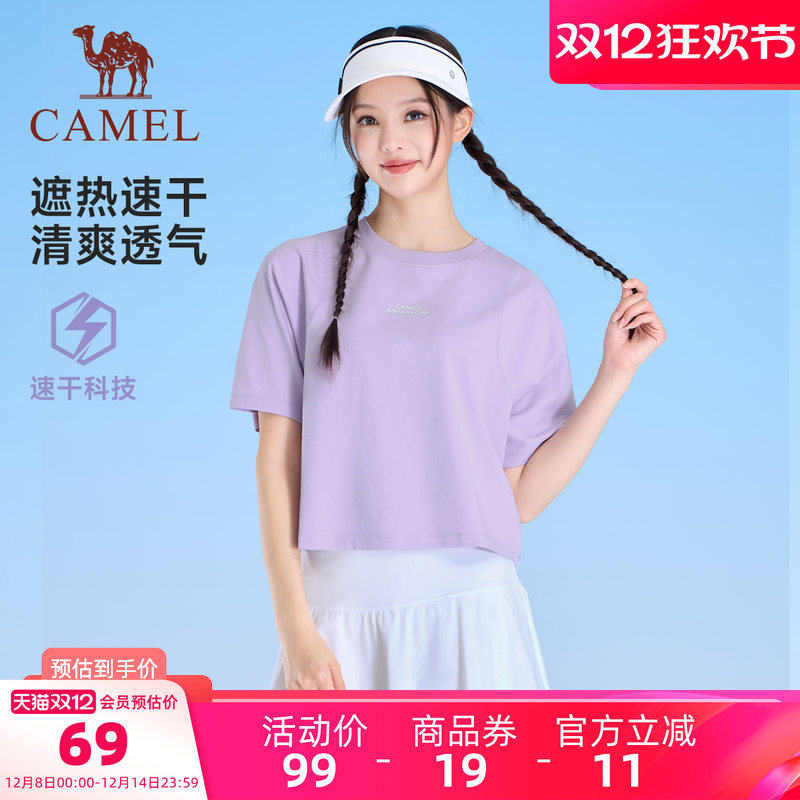 骆驼速干T恤女短袖运动上衣 2025春夏新款网球服冰丝晨跑瑜伽服女