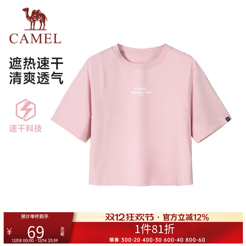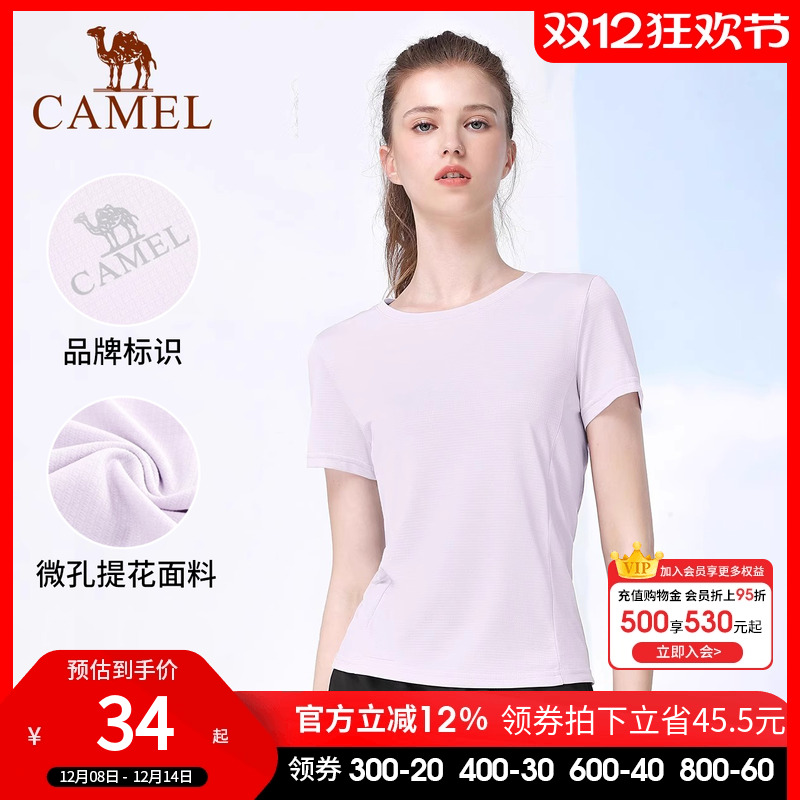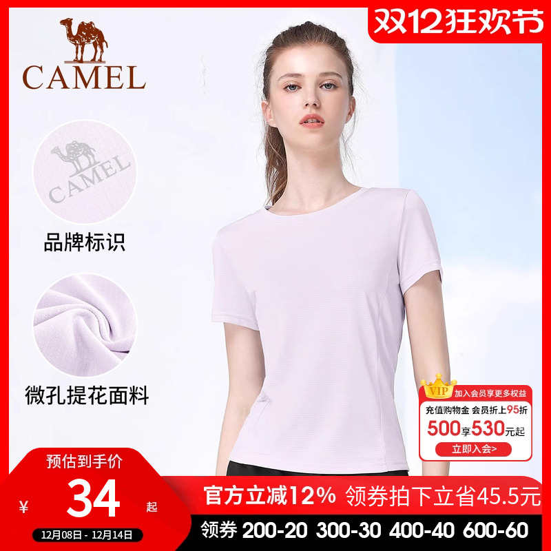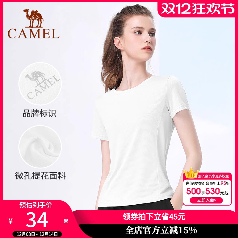 骆驼短袖T恤女士夏季新款修身跑步上衣快干凉感透气运动健身体恤