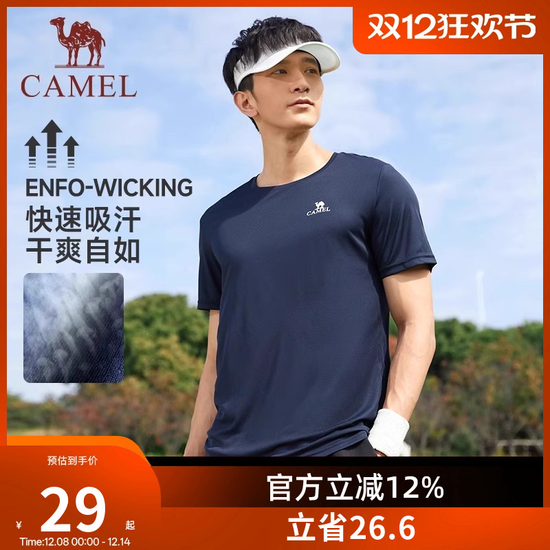 骆驼运动速干衣T恤短袖男士夏季冰丝薄款透气跑步健身户外上衣女