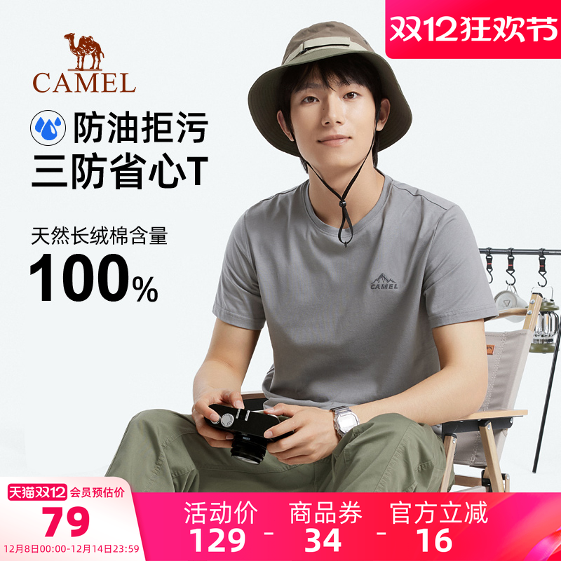【三防T恤】Camel骆驼短袖t恤男夏内搭纯色圆领半袖体恤打底衫