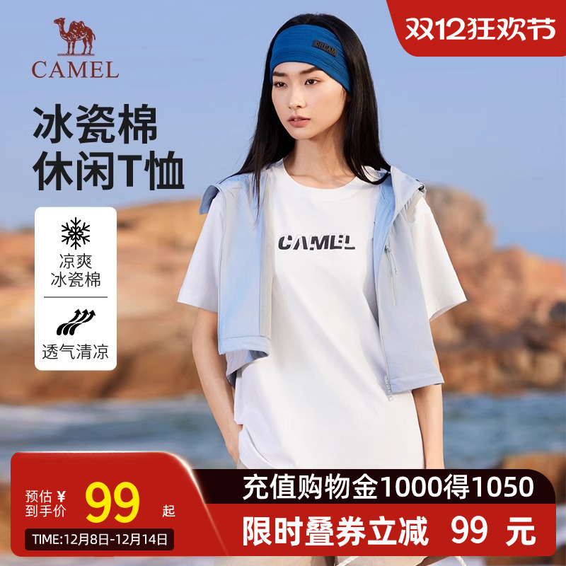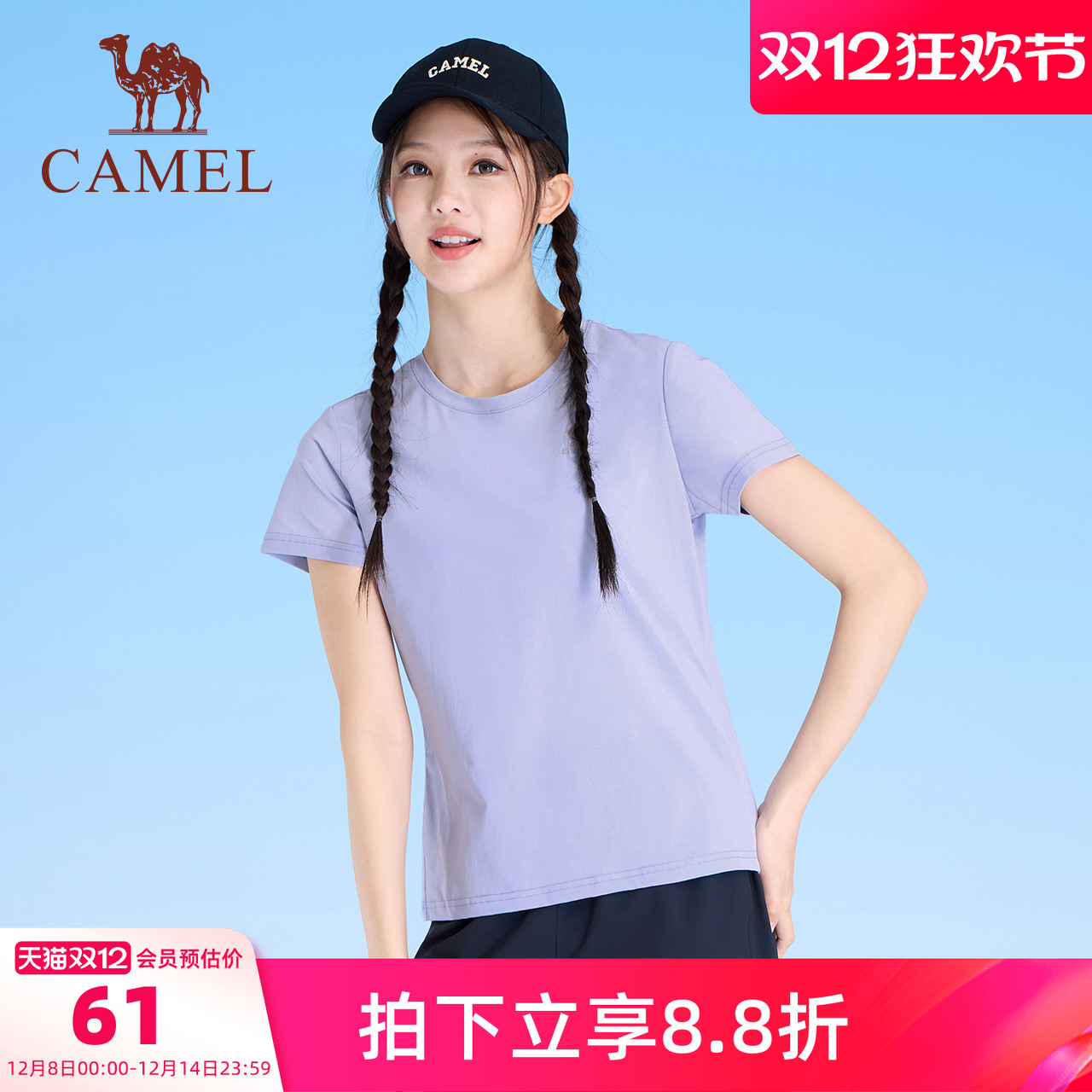 骆驼短袖T恤女夏季2025新款冰感复古潮牌圆领休闲宽松版型运动T恤