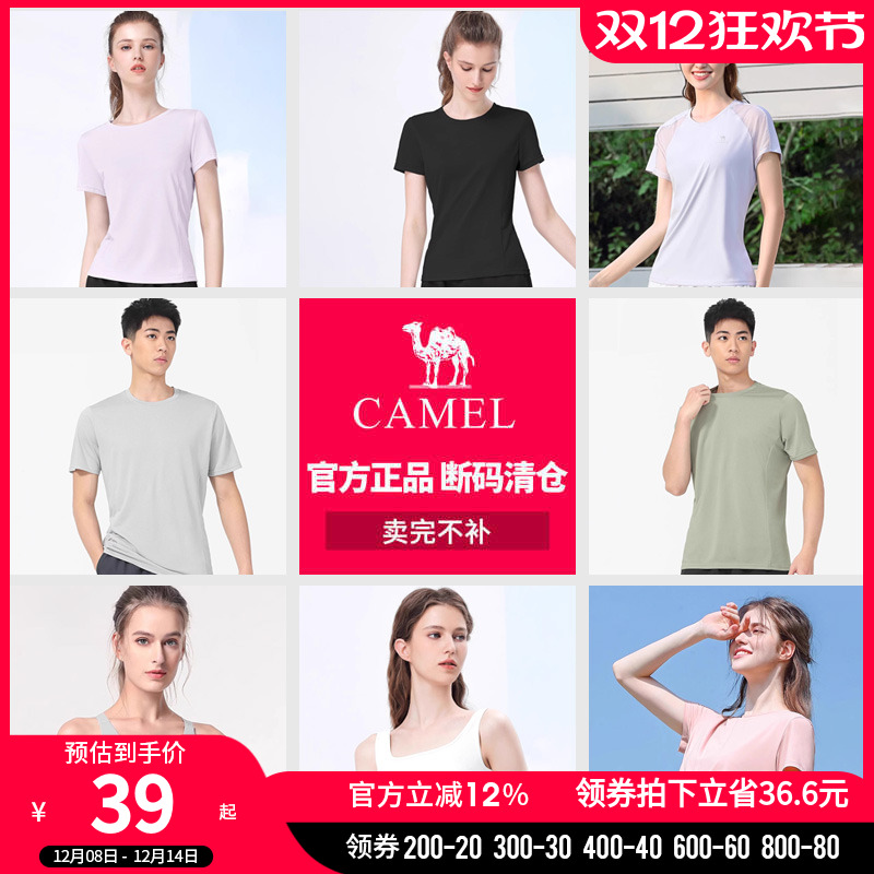【断码清仓】骆驼短袖T恤女款运动上衣健身瑜伽内衣跑步短裤男款