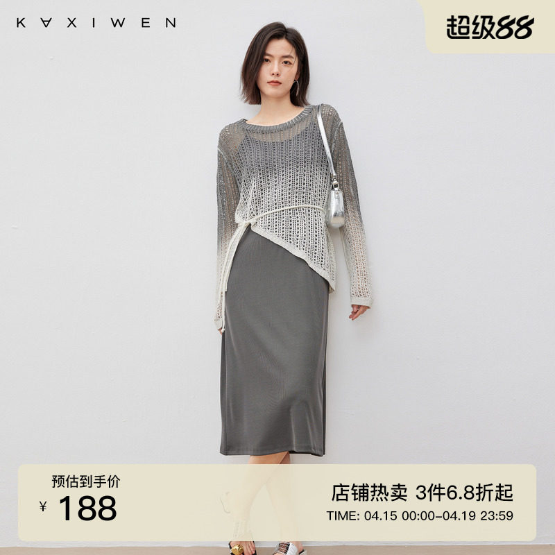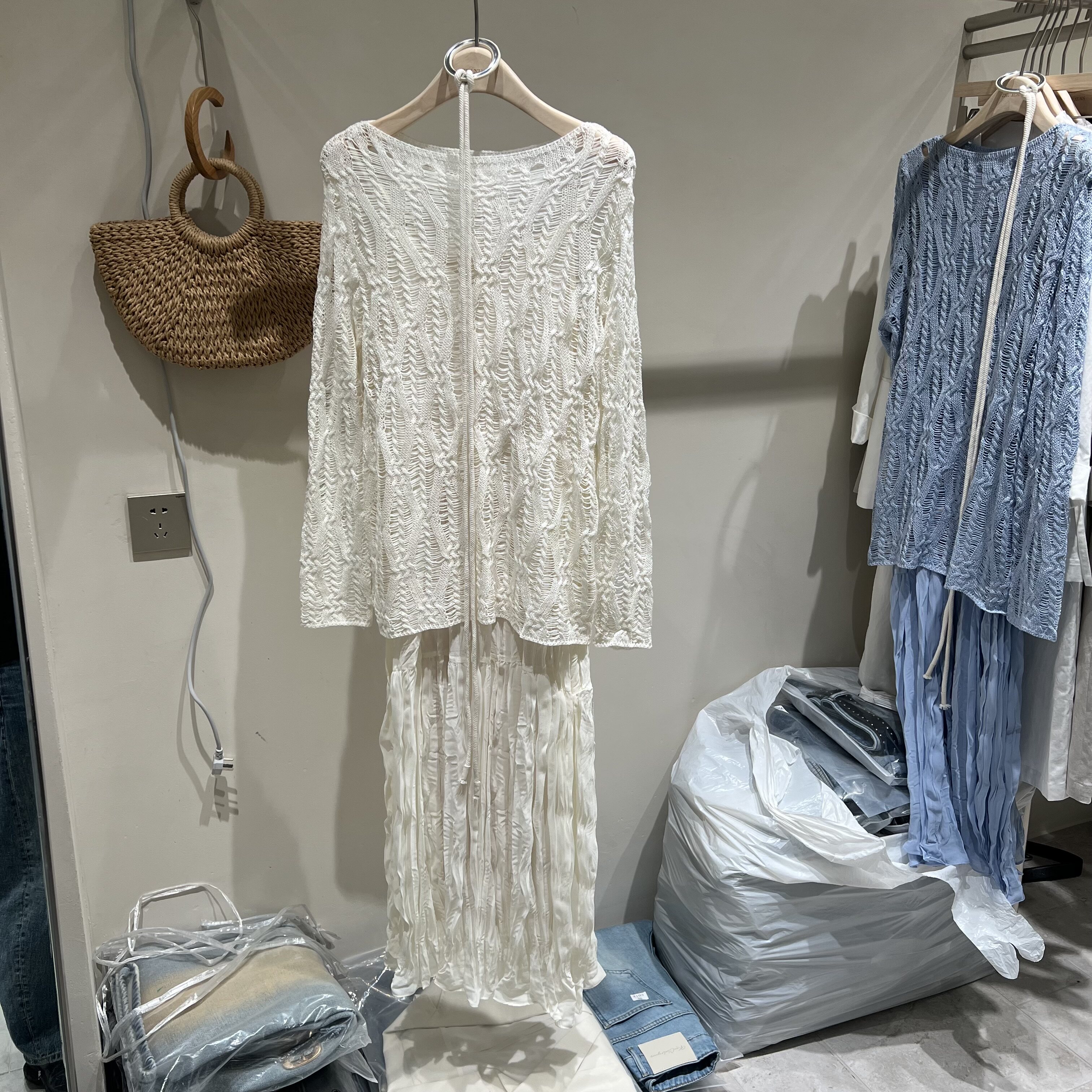 2026春季新款温柔风镂空针织上衣罩衫+针织吊带连衣裙两件套装女