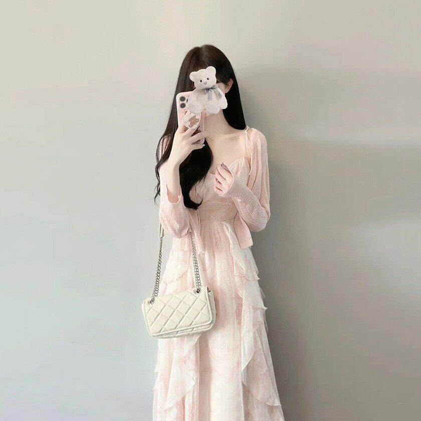 欧洲站2025年早秋新款今年流行开衫吊带长裙森系连衣裙两件套装女