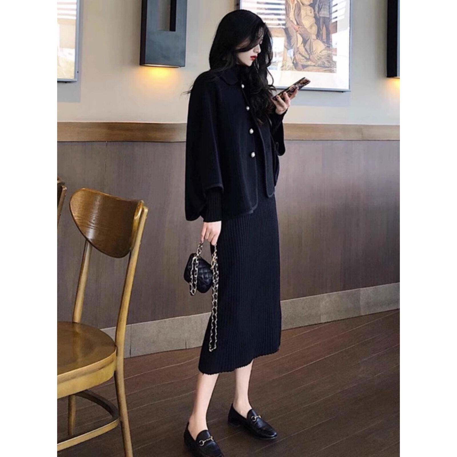 欧洲站秋冬新款名媛御姐大气斗篷外套针织长裙高级感套装连衣裙女