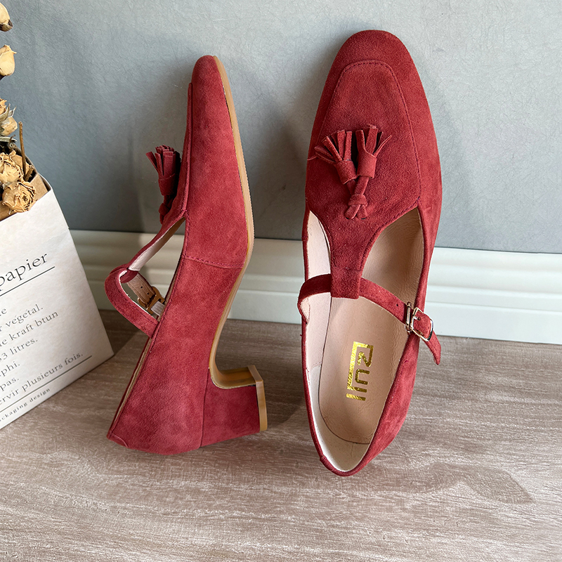法式复古流苏玛丽珍单鞋女平底2025秋季新款一字带圆头浅口奶奶鞋
