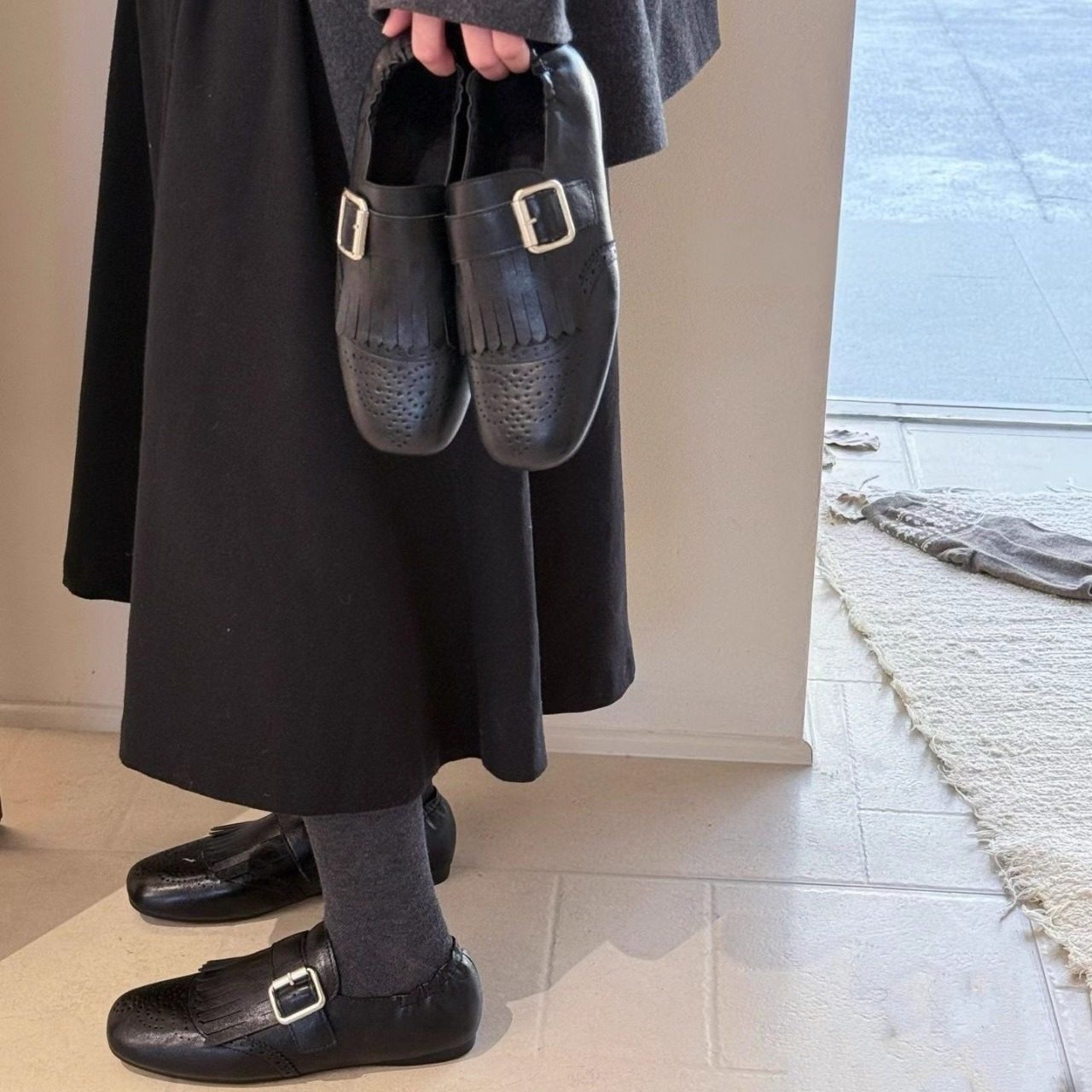 MILLIE'S/妙丽复古单鞋女款平底真皮流苏小皮鞋小众设计感一脚蹬