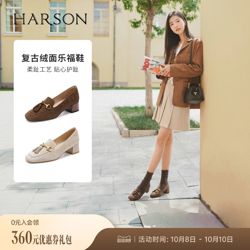 哈森绒面流苏乐福鞋高跟上班通勤百搭女鞋单鞋2025秋新品HL257122