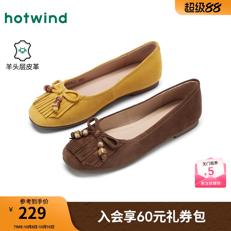 热风浅口单鞋女款2025年秋季新款串珠流苏平底鞋子百搭复古女鞋