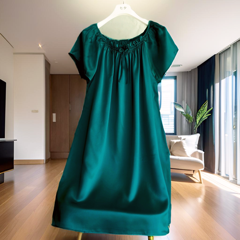 100桑蚕真丝连衣裙25新款 宽松休闲简约娃娃睡裙家居外穿可一字领