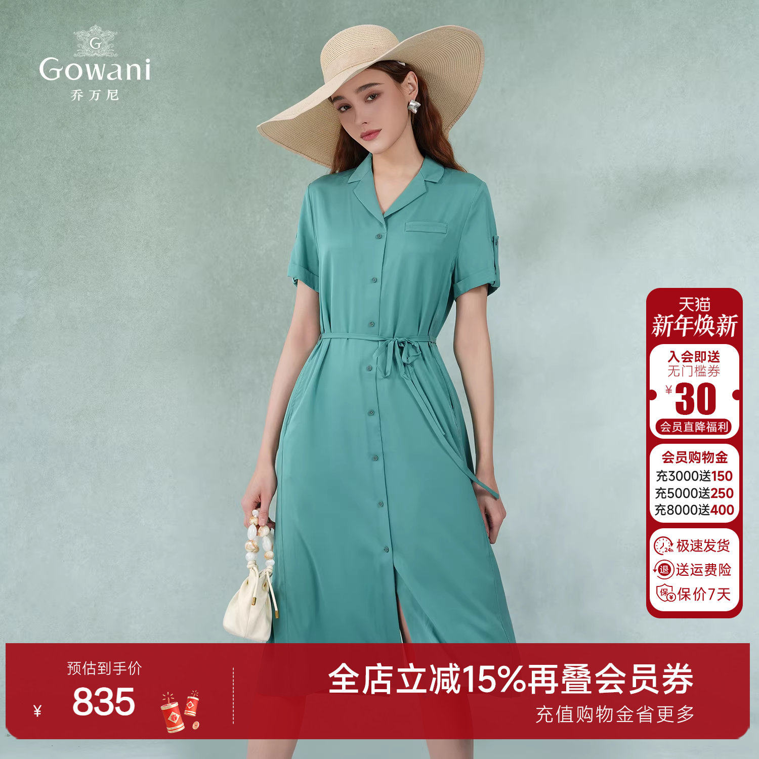 乔万尼2025夏季真丝v领精致连衣裙气质休闲桑蚕丝商场同款EI2E879