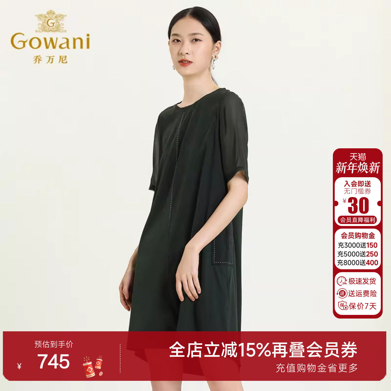乔万尼桑蚕丝连衣裙商场秋装新品女装时尚圆领休闲宽松真丝裙中长