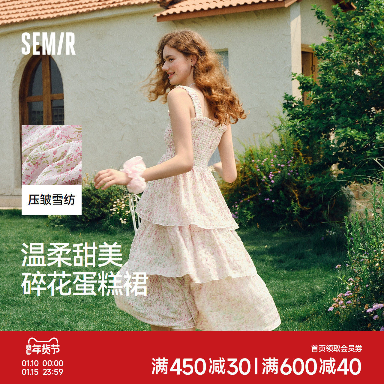 森马连衣裙女肌理雪纺蛋糕裙度假风2025夏新款浪漫碎花吊带裙温柔