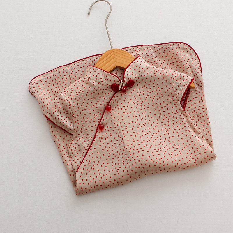 儿童雪纺皱点点旗袍女童中国风连衣裙2025新款夏季宝宝小旗袍