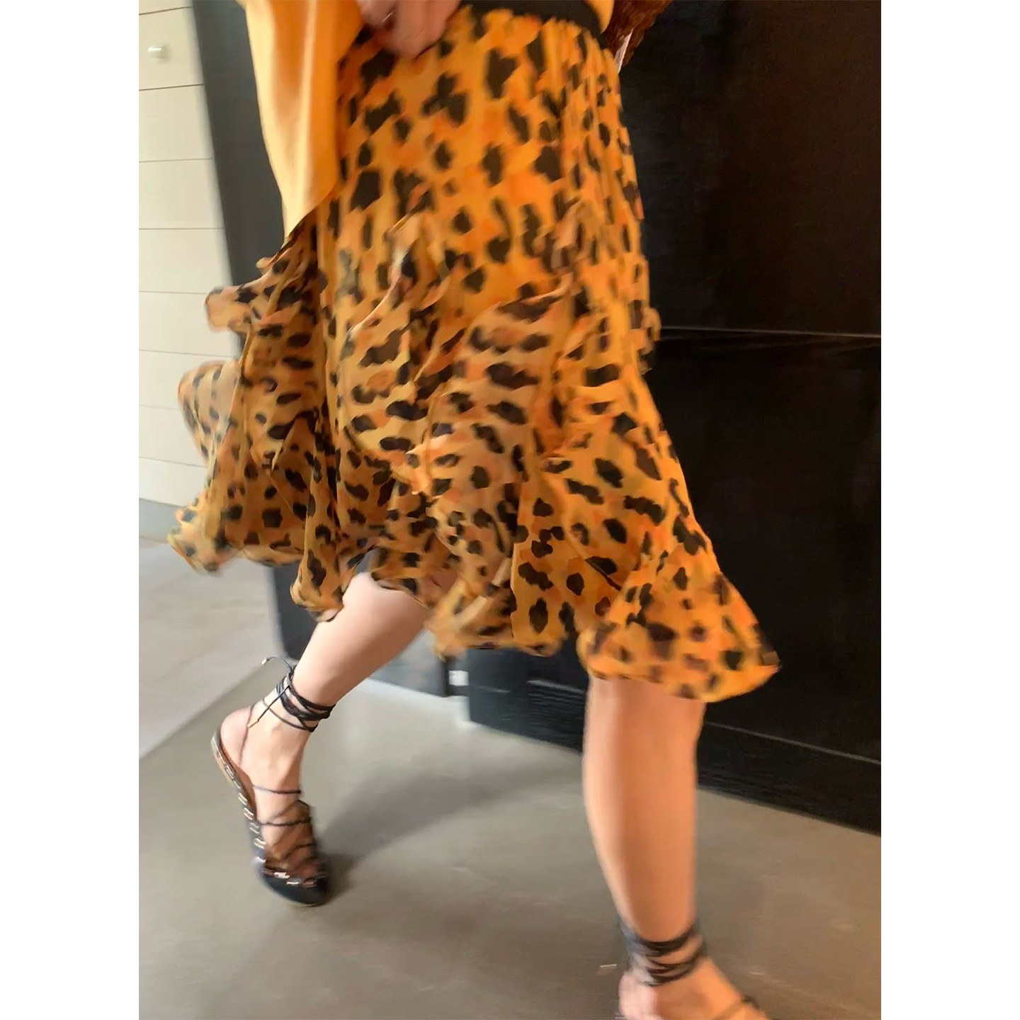 落落狷介 雪纺豹纹半身裙女2026年新款设计感小众夏季不规则裙子