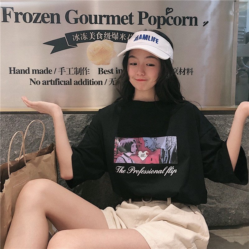 - 短袖t恤女 宽松 韩版 学生 显瘦