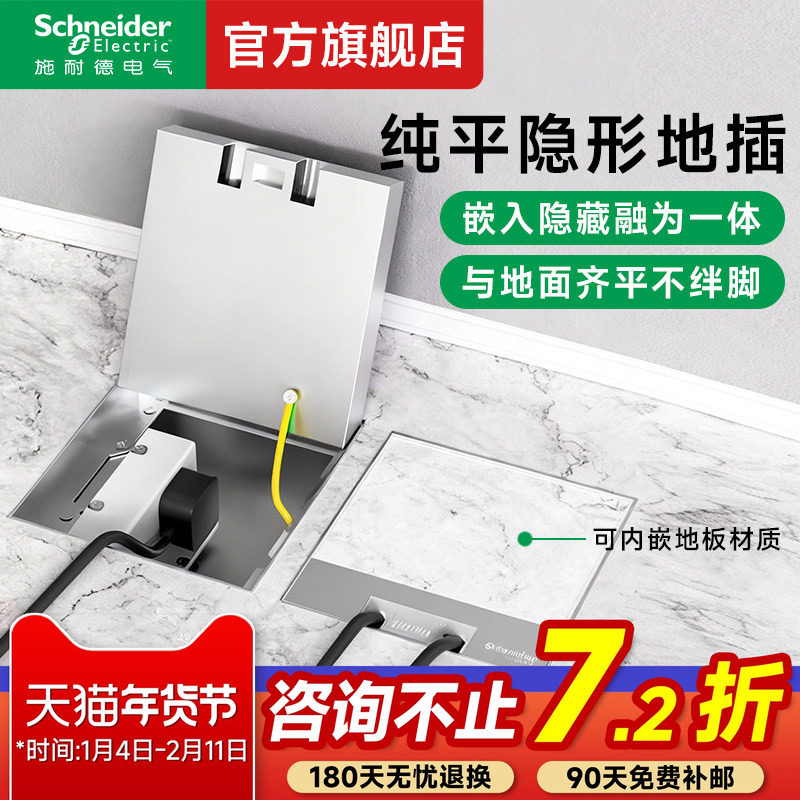 施耐德开关插座官方旗舰店 不锈钢嵌入式纯平地插隐藏式地面插座