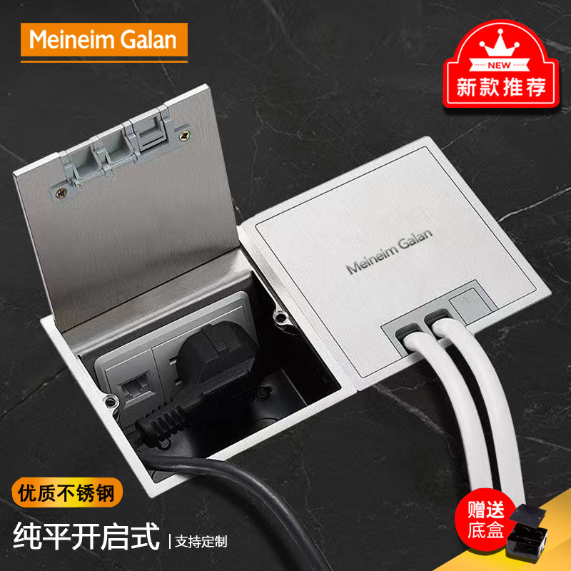 大理石瓷砖地插座隐形纯平隐藏式超薄网线地面嵌入式不锈钢地插座