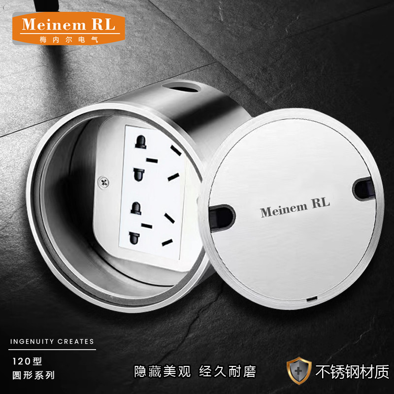 地插座隐形商场隐藏五孔网络出线口纯平地板插不锈钢防水圆形地插