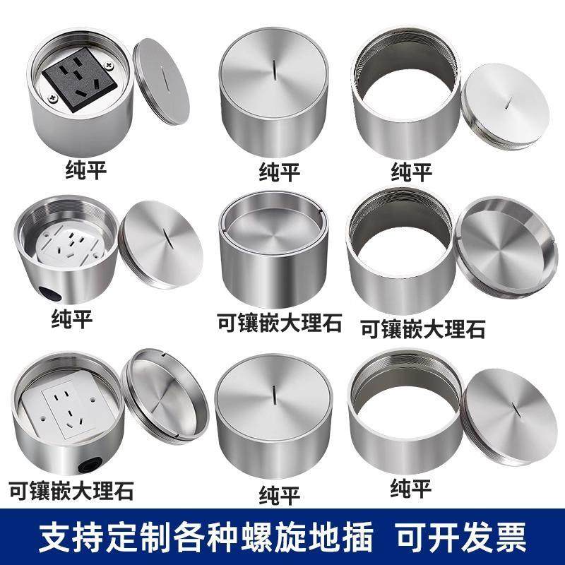 不锈钢防水户外圆形地插座隐形纯平嵌入式隐藏式室外螺旋地插插座