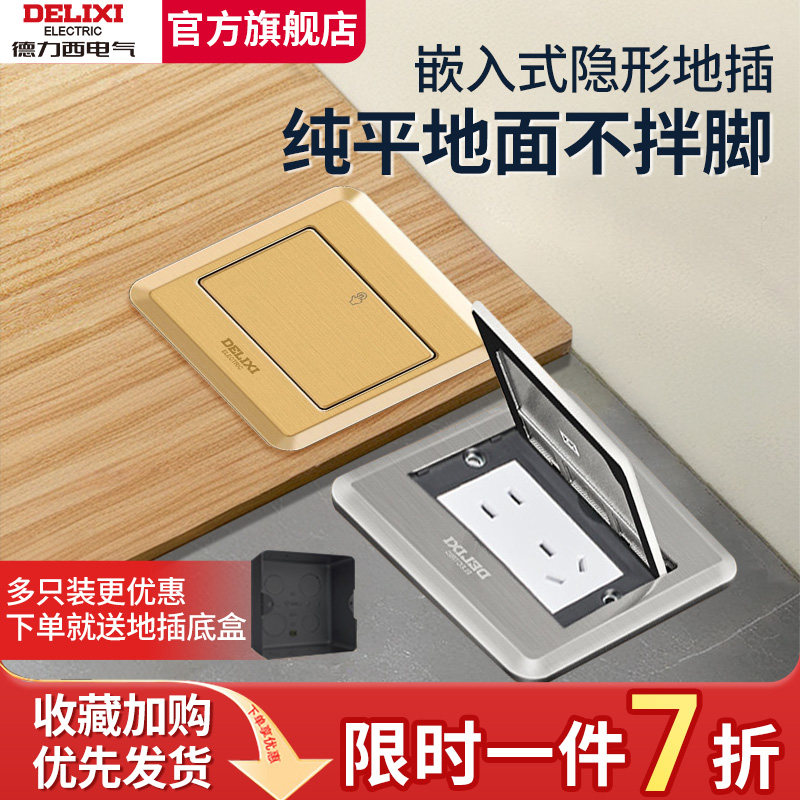 德力西地插嵌入式隐形超薄纯平地面家用盖板五孔地插插座自带底盒