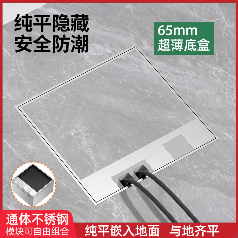 国际电工隐形嵌入式纯平超薄地插座不锈钢防水全平瓷砖大理石地板