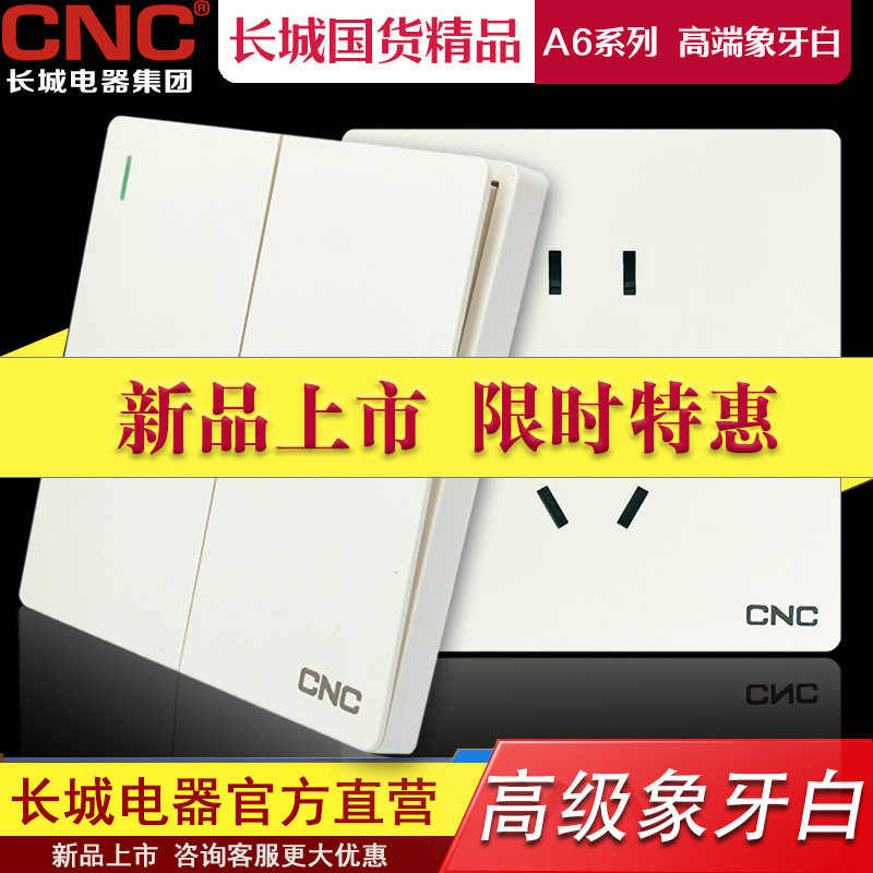 长城A6系列象牙白色开关插座 86型暗装大板纯平面板CNC全铜五孔插