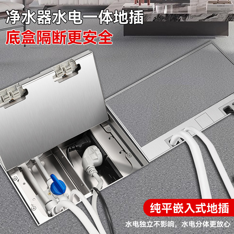 纯平嵌入式水电一体三分排水管二分进水管带开关不锈钢净水器地插