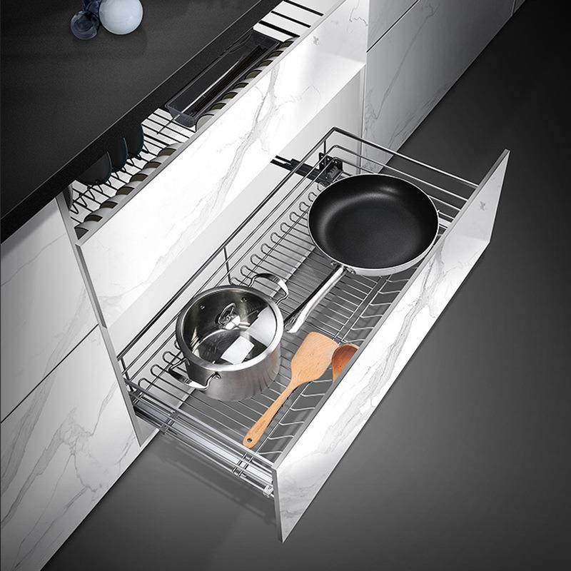 不锈钢拉篮 厨房高承重304拉篮抽屉双层不锈钢线条橱柜碗碟拉篮