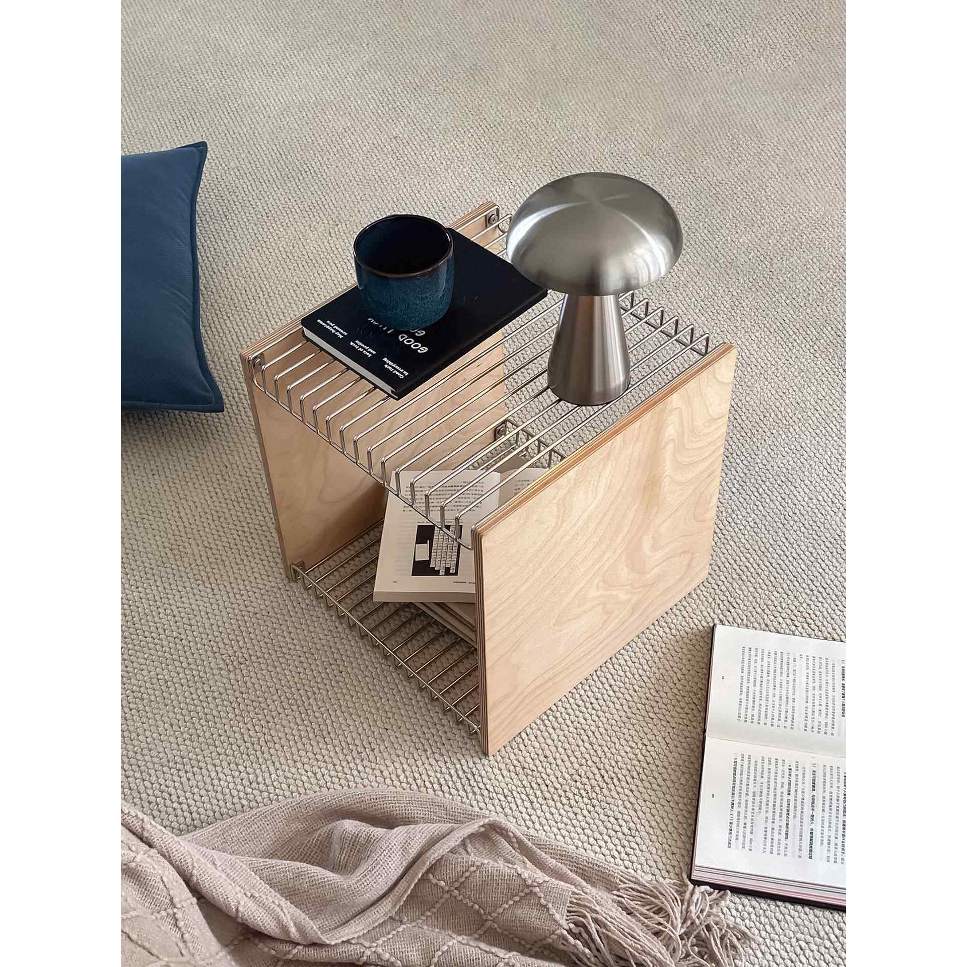 丹麦设计师不锈钢线条边几创意组合家用金属书报架中古收纳床边桌