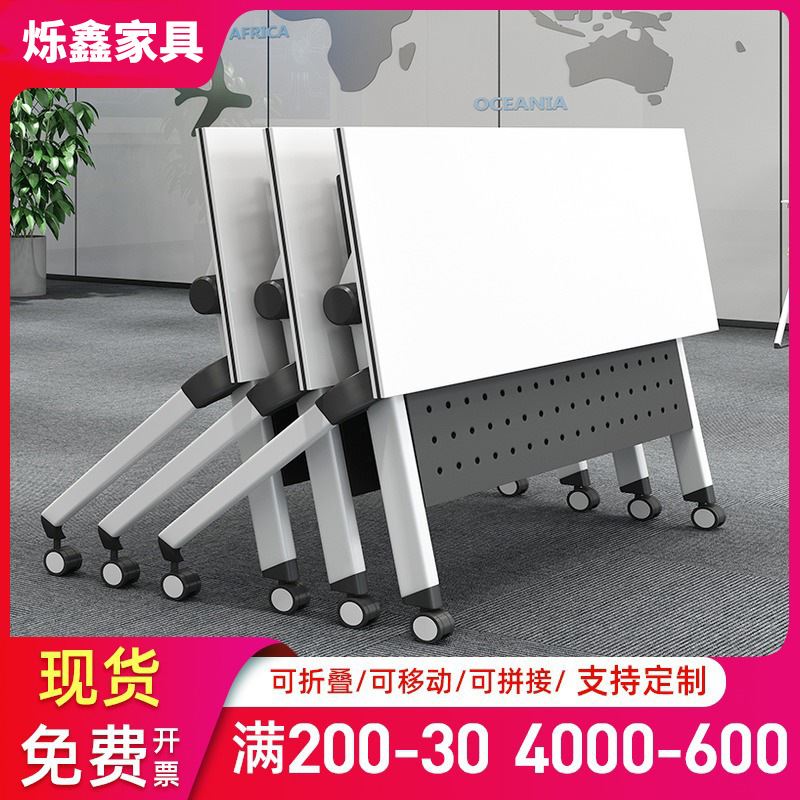 折叠会议培训桌椅职员办公桌侧翻课桌椅学生移动拼接长条桌培训台