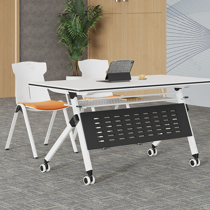 可折叠会议培训桌椅组合移动拼接多功能办公长条双U人带轮简易课