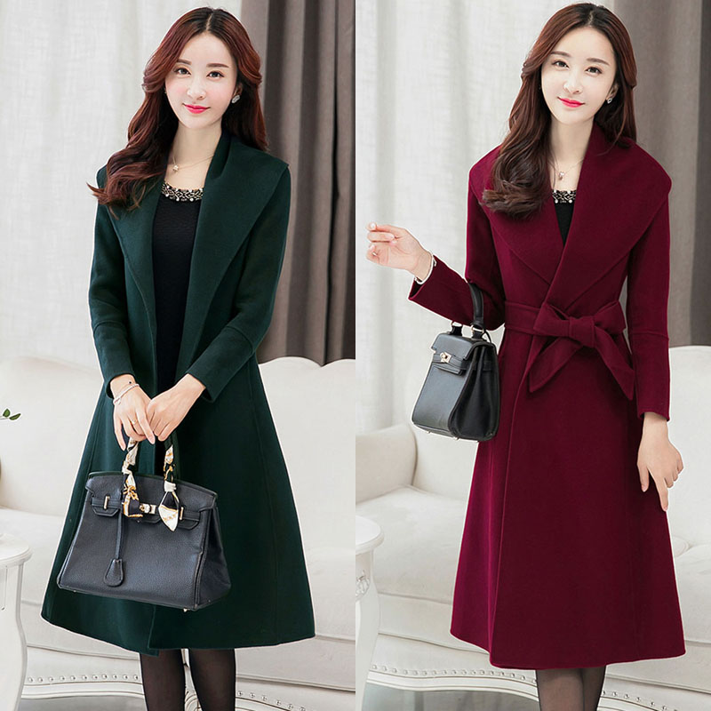 名牌高端女装2023秋新款青中年女大红色狐狸毛领羊绒大衣羊毛风衣