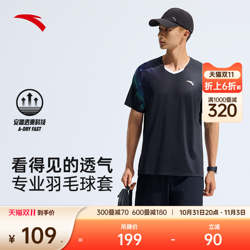 安踏速干羽毛球套装男夏季透气专业运动两件套训练运动服短袖短裤