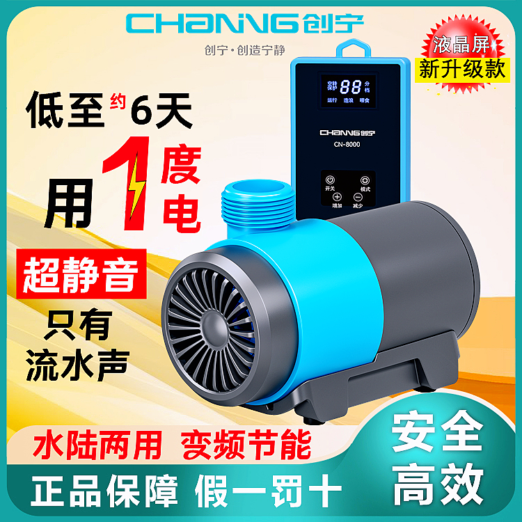 创宁家用省电鱼缸水泵超静音鱼池假山专用过滤循环抽水泵变频水泵