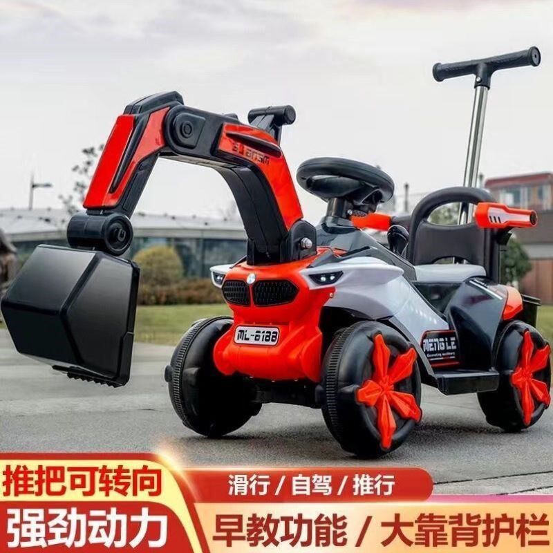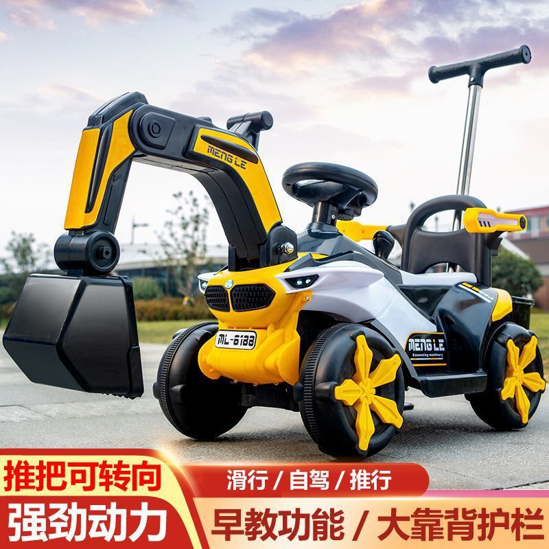 儿童挖掘机可坐可骑大号电动玩具车充电挖土机滑T行车男女孩工程