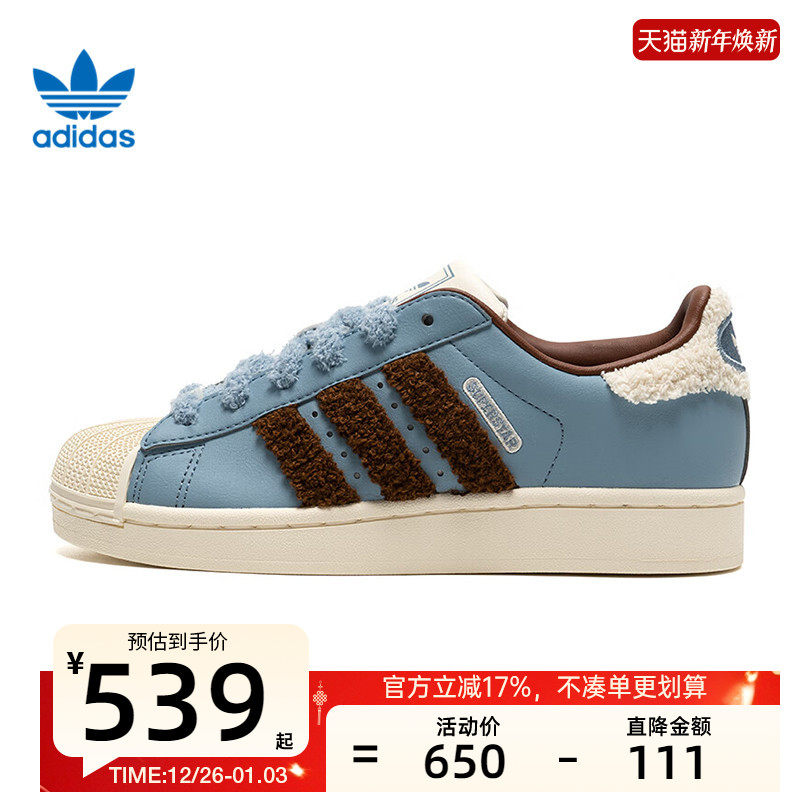 adidas阿迪达斯三叶草2025冬女SUPERSTAR贝壳头小白板鞋 JQ6473