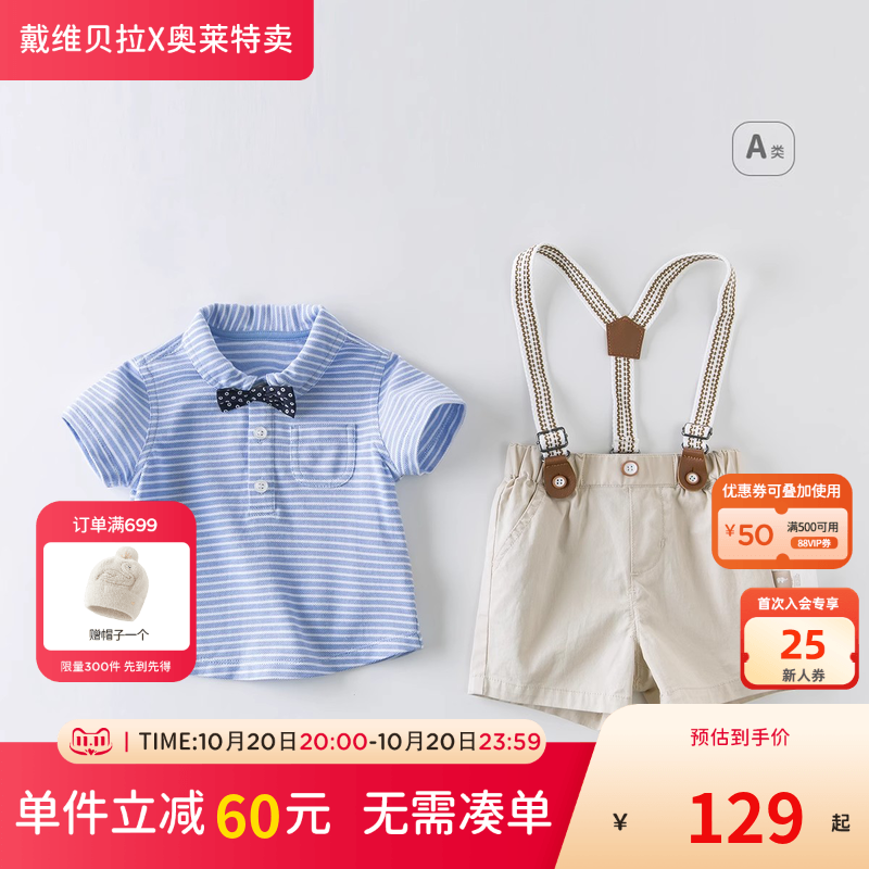 戴维贝拉davebella男童套装 夏装新款时尚帅气宝宝绅士两件套