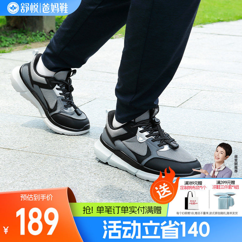 舒悦老人鞋男防滑软底春秋款爸爸鞋中老年舒适运动鞋旅游健步休闲