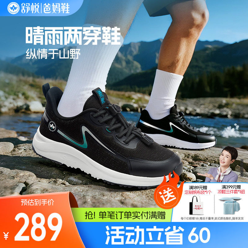 舒悦老人鞋男防滑软底爸爸鞋中老年舒适官方旗舰店防水鞋户外旅游