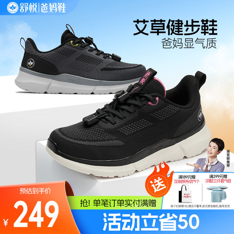 舒悦老人鞋官方旗舰店正品中老年艾草妈妈旅游防滑软底女健步鞋男