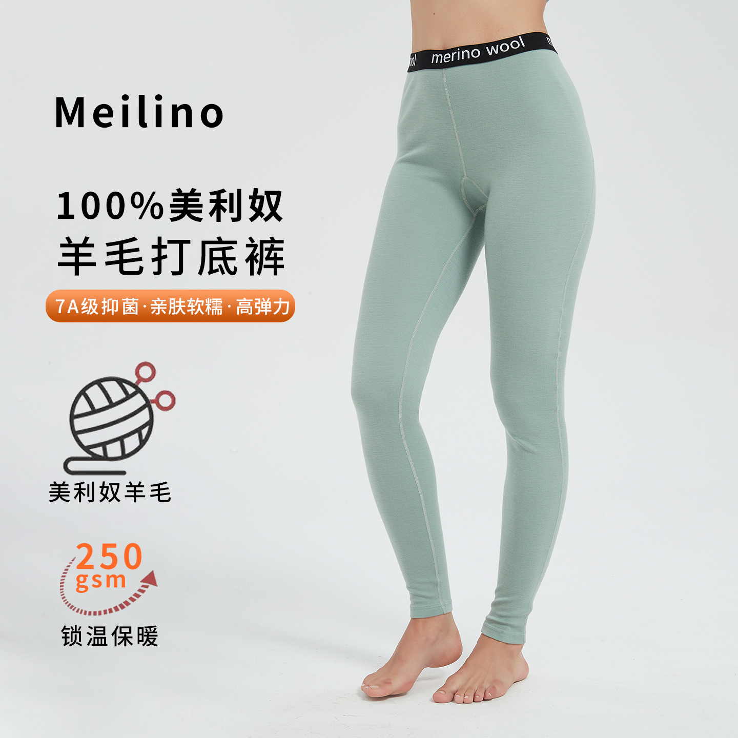 美利奴羊毛打底裤女户外速干裤美丽诺秋裤徒步运动保暖裤250g/m²