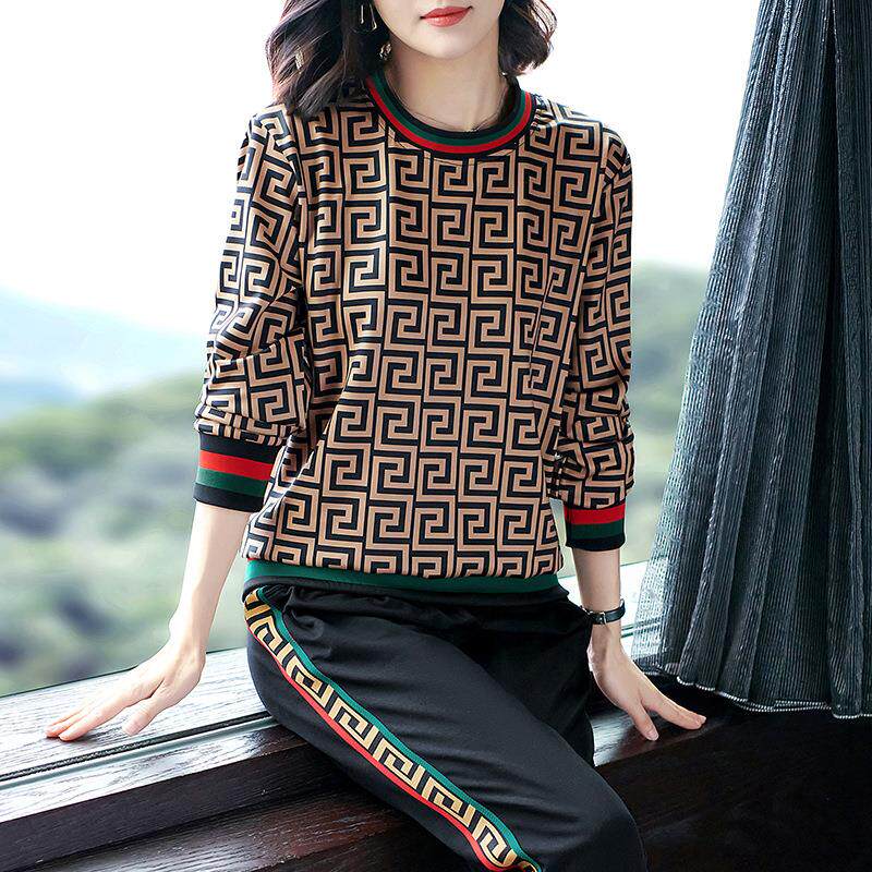 秋季宽松73360741韩大春套装女版洋气圆领休闲码长袖卫衣两件套