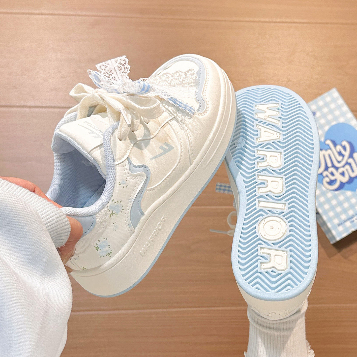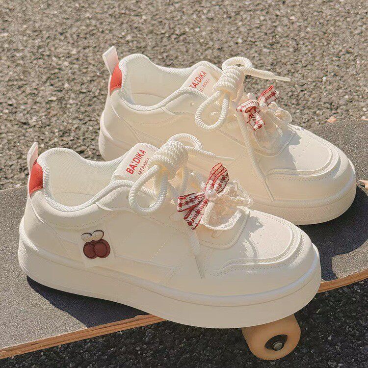 鲁鲁蛋 韩系厚底板鞋女款2025新款百搭鞋子小白鞋蝴蝶结面包鞋潮